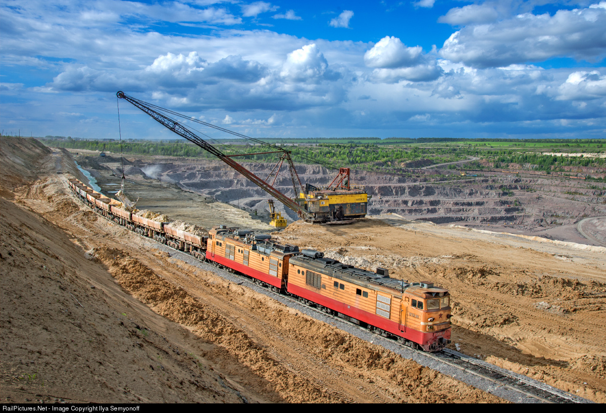 OPE1 traction unit stands on the filling at the quarry of "Pavlovsky GOK". The action took place at "Pavlovsk Mining and Processing Integrated Works" ("Pavlovsky GOK") - the largest plant for extraction and processing of granite in Europe.