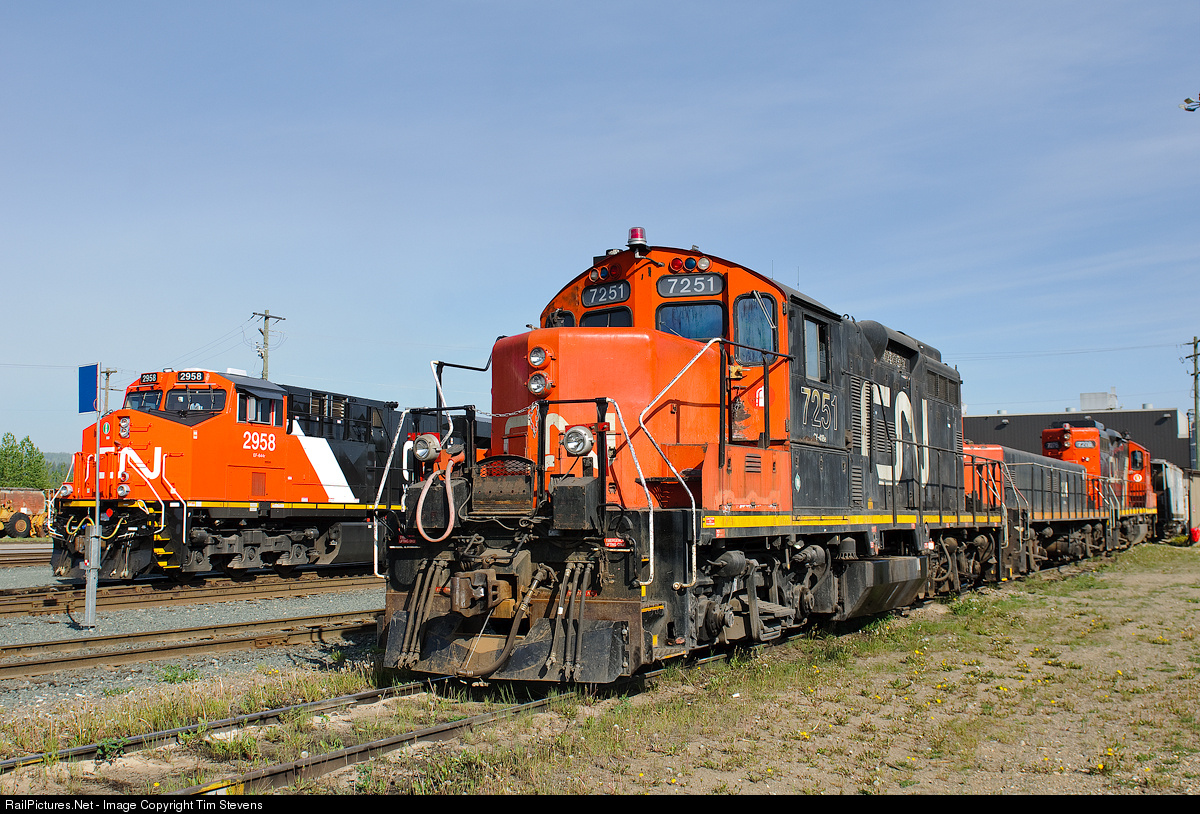 | With over 55 years of difference in age, CN GP9RM 7251 and brand new CN ES44AC 2958 both await their next assignments on the south side of CN's Prince George diesel shop. I think it's safe to say that the 2958 will not be around 55 years from now! |