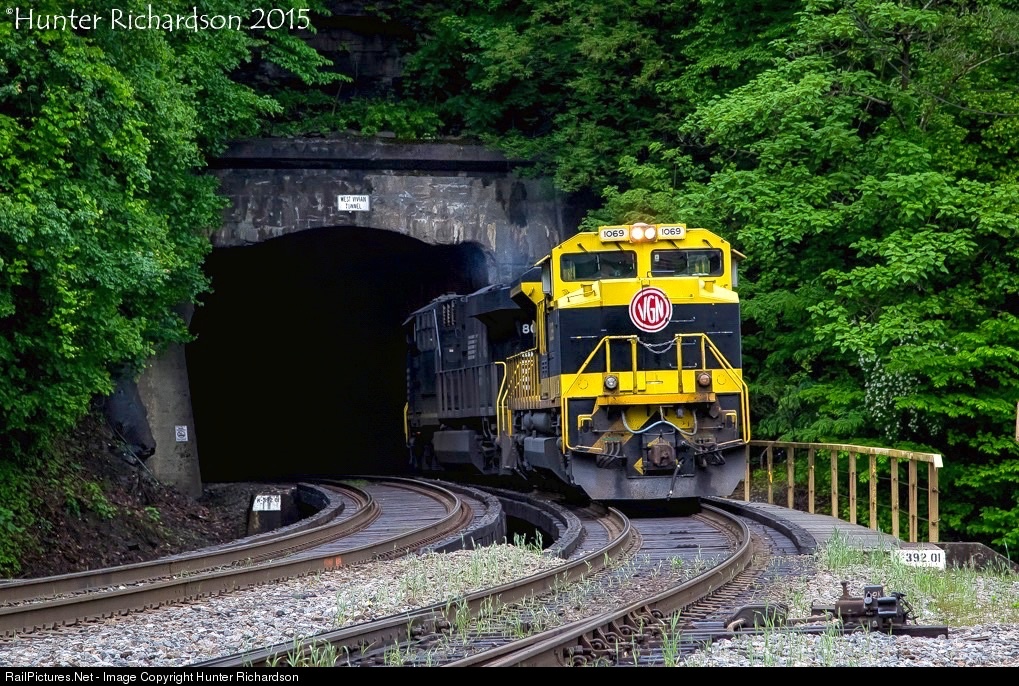 Returning west to Farm for 83J, Norfolk Southern's Virginian Heritage Unit ducks into West Vivian Tunnel on the former N&W.