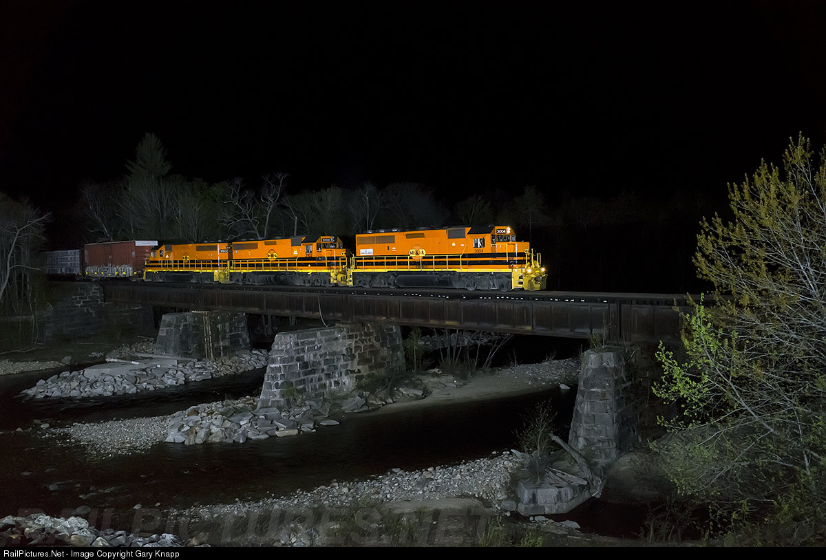 We are out in the breakdown lane on a highway bridge in Gilead, Maine, it's pitch dark, a moonless night, little traffic. I'm hand holding the Ricoh GR as SLR train 394 behind a trio of GP 40's is heard on final approach. The sound effects are wonderful but, only headlights are seen as 394 comes across the bridge! They slowly light up the tree branches on the right providing my frame of reference to where I want 3004 out there. I press the shutter and the scene is lit up by the flash lighting! In an instant pitch dark returns. The GR's rear screen shows success at 00:42!
