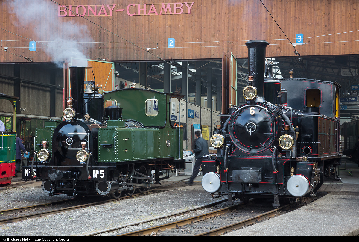 G 3/3 # 5 (left) of the Lausanne-Echallens-Bercher Railway (LEB) is 125 years old now (built in 1890 by Grafenstaden/Alsace/France) and it is the first day that she is operational again since many years. G 3/3 # 6 comes from the Bière-Apples-Morges Railway (BAM) and was built in 1901 by SLM Winterthur.