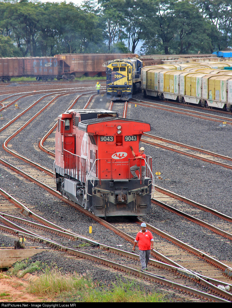 | Switching duties at new Tutoia yard with C44-9MW #9043 assigned to the job. At background, MRS M86 standing by. |