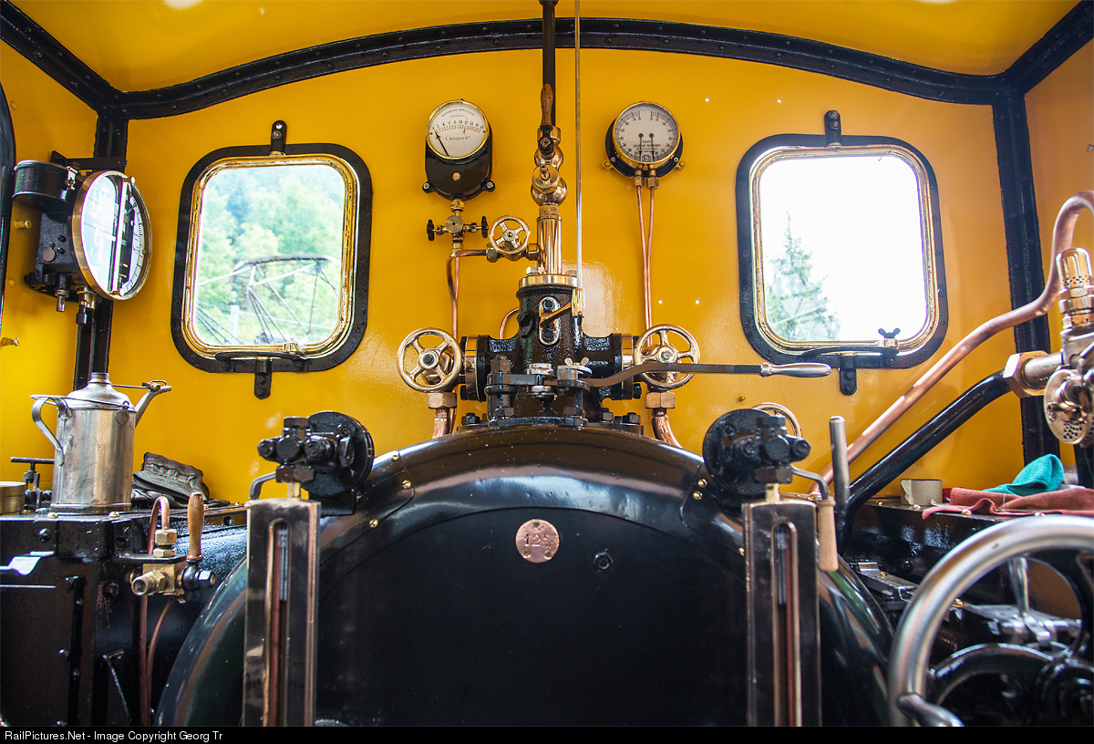 View onto the footplate of the 1 meter gauge steamlocomotive G 3/3 # 5 of the Lausanne-Echallens-Bercher Railway (LEB), which is operational again today after 10 years of storage.