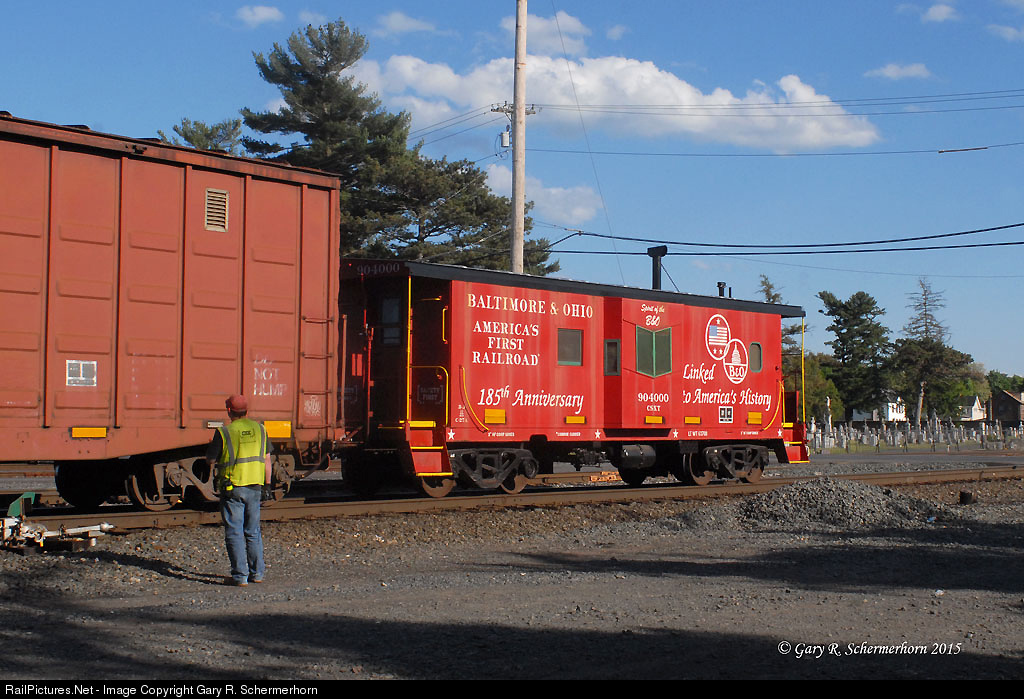 | A special former B&O bay window caboose coming in behind a rail train to Kingston Yard to l,ay over for the holiday weekend. The crew were earlierblaying down a section of rail in Newburgh. |