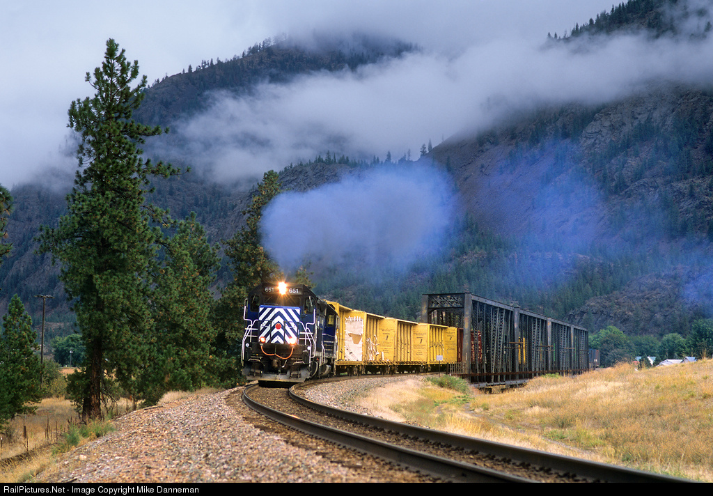 Montana Rail Link’s Paradise local crosses the Clark Fork at Paradise, Montana, on September 22, 2006. The local is led by former SD9 No. 651, former EJ&E No. 601, and totally rebuilt by MRL at its Livingston Shops into a SD19-1 in 1991. After idle time in Paradise, the locomotives smoke it up leaving town, with the exhaust almost mimicking the low clouds hanging over the valley.
