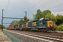 | B&O invasion on CSX's Trenton Sub!!!!! Shortly after some nasty storms rolled through Lower Bucks County, a trio of former Baltimore & Ohio GP40s and a former B&O caboose lead empty rail train W020 Westbound through Yardley, PA at the Stony Hill Rd crossing. In the foreground can be seen the new 3rd track that has been added back in, and the track the W020 is on will become the dedicated CSX freight main. |