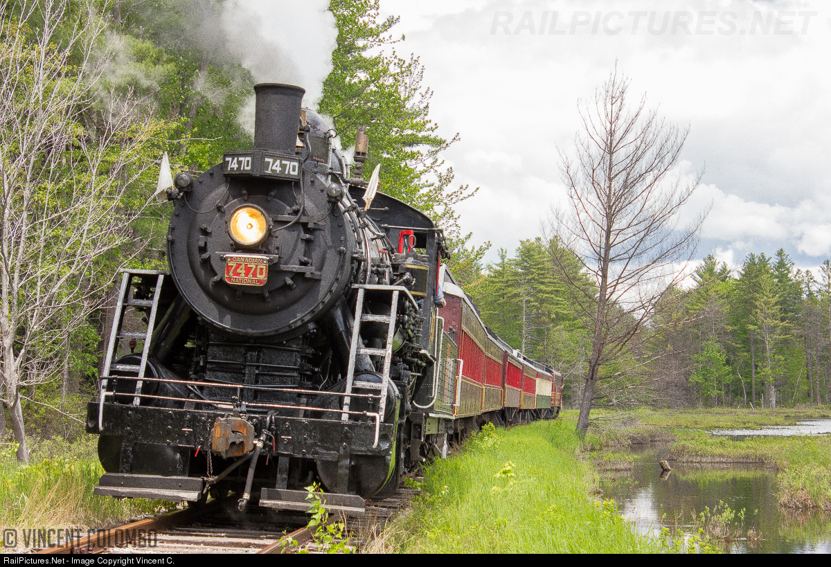 | The "7470 Photo Special": one of the last photo specials for Conway Scenic 7470. In late May, the Mass Bay RRE hosted an excursion that covered most of the lower part of the line. Here, we see 7470 posing for a shot by Pudding Pond in Conway, NH. 7470 is currenty out of service because of it's 15-year boiler inspection. |