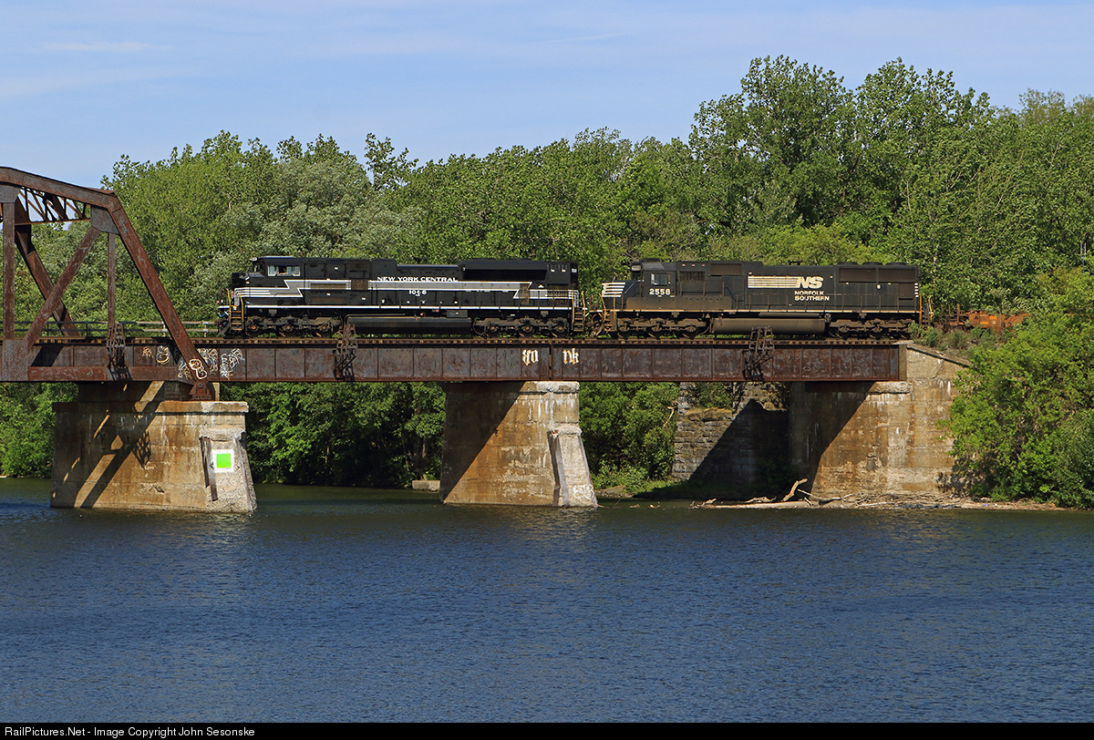 The New York Central heritage unit crosses the Mohawk River on the former D&H. It is leading the Chicago to Mechanicville, NY intermodal train NS 206 (CP 938)