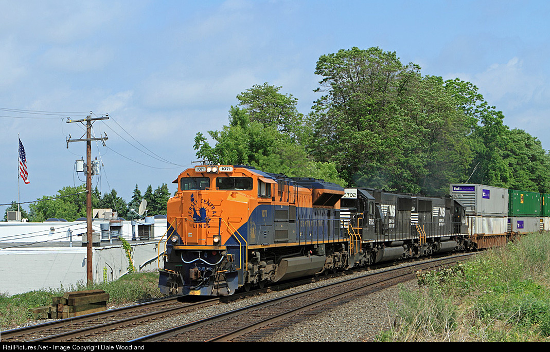 NS Jersey Central heritage locomotive is west bound to Chicago on NS's Reading Line