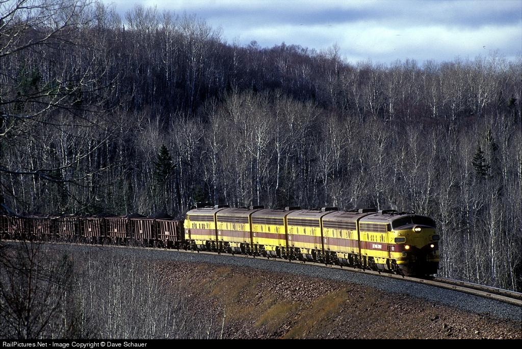 Loaded taconite train with LTV's "6-Pack" of F9s rolls toward Taconite Harbor.