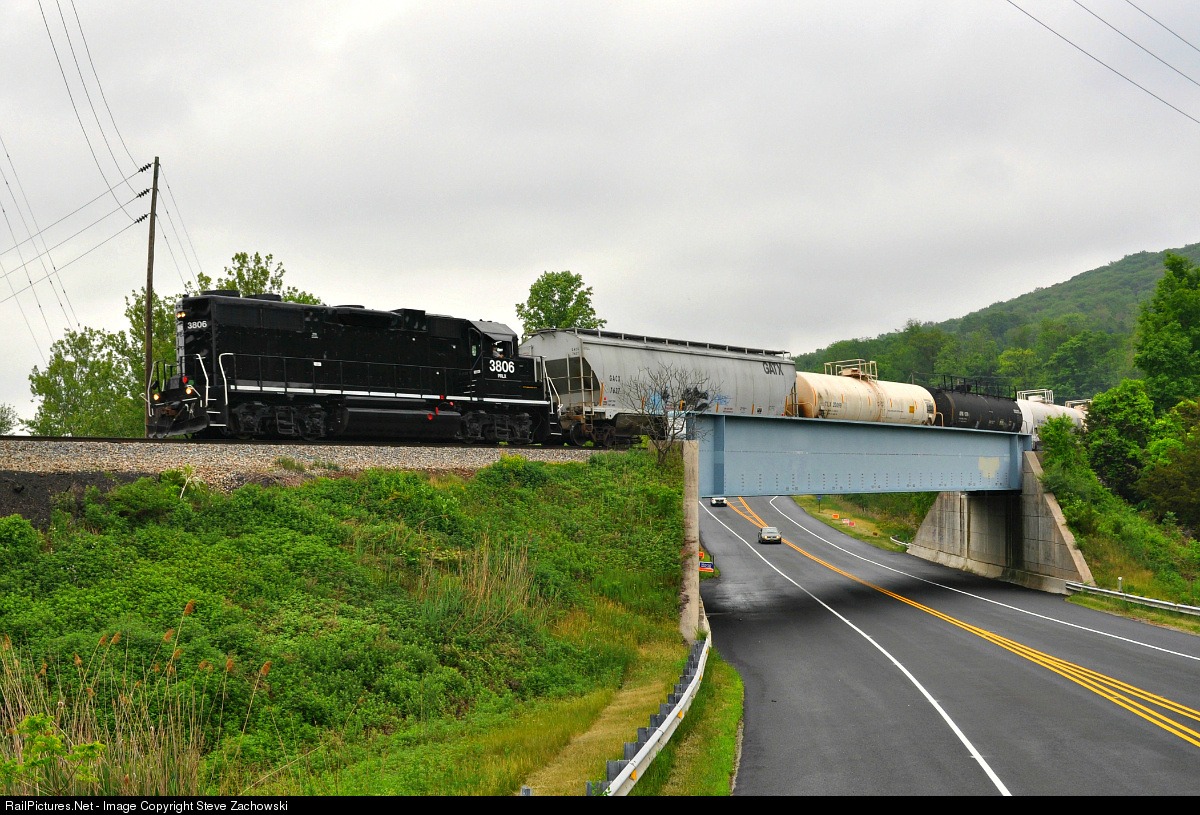 After a shortened work week due to Memorial Day on Monday, the NYS&W had a derailment in Marathon, NY which caused freight to back up at both ends of the railroad. On the Jersey side of things all remained quiet until Sunday May 31 when WS-2X was scheduled to run to Sparta in order to bring "hot cars" to a customer. The crew had the seldom used PRLX 3806 for power with a 7 car train bound for Sparta. Here the train is seen passing over Route 517 shortly after thunderstorms passed through the area.