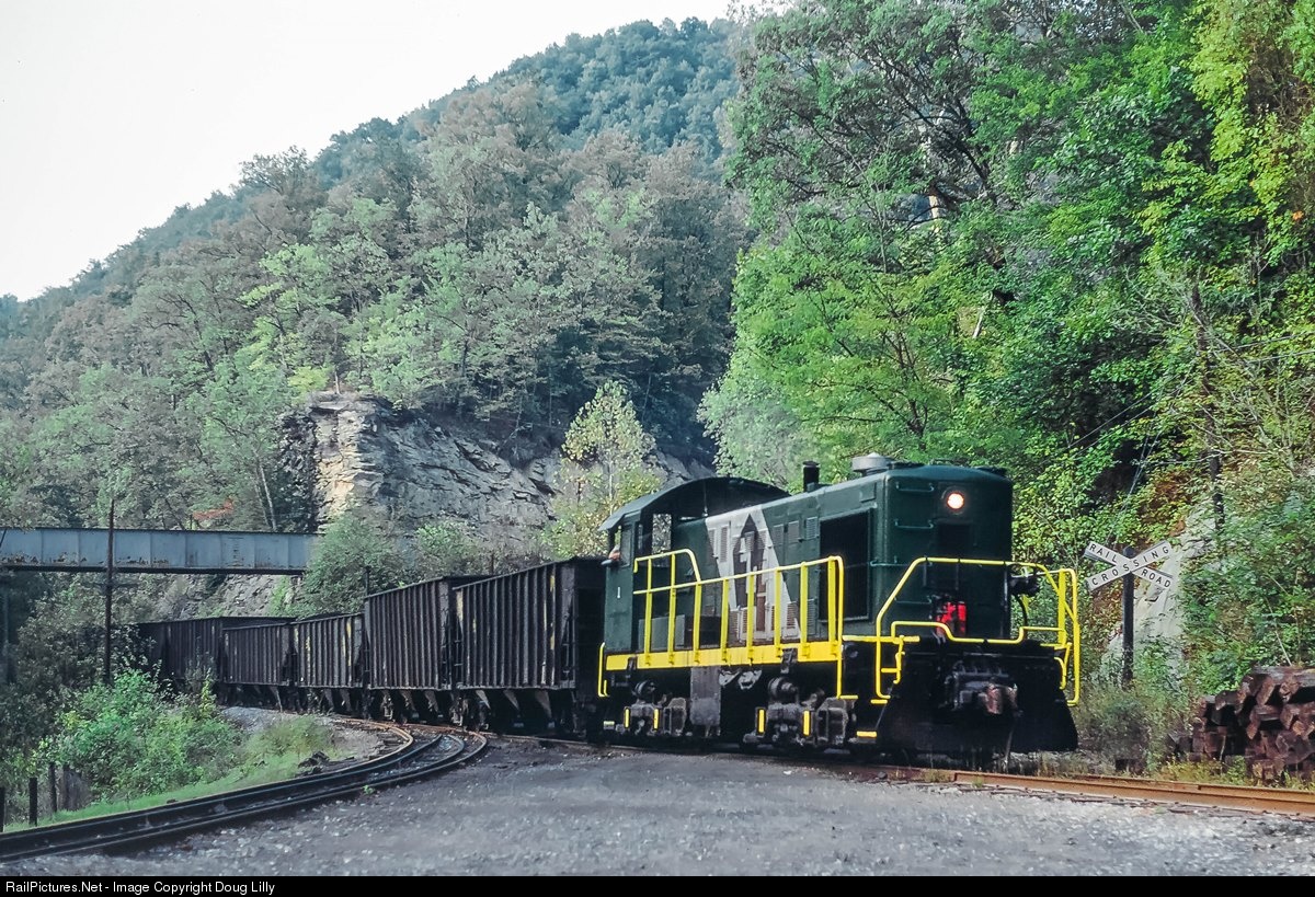 | Majestic Mining #1 is pulling a cut of empties off of the B&O and is proceeding onto the former Buffalo Creek & Gauley tracks in Dundon, West Virginia. The operation would last another three years before shutting down. The railroad would have another three year reactivation as part of the Elk River Railroad in the 1990's, and there is a group trying to use the BC&G for a tourist line. |