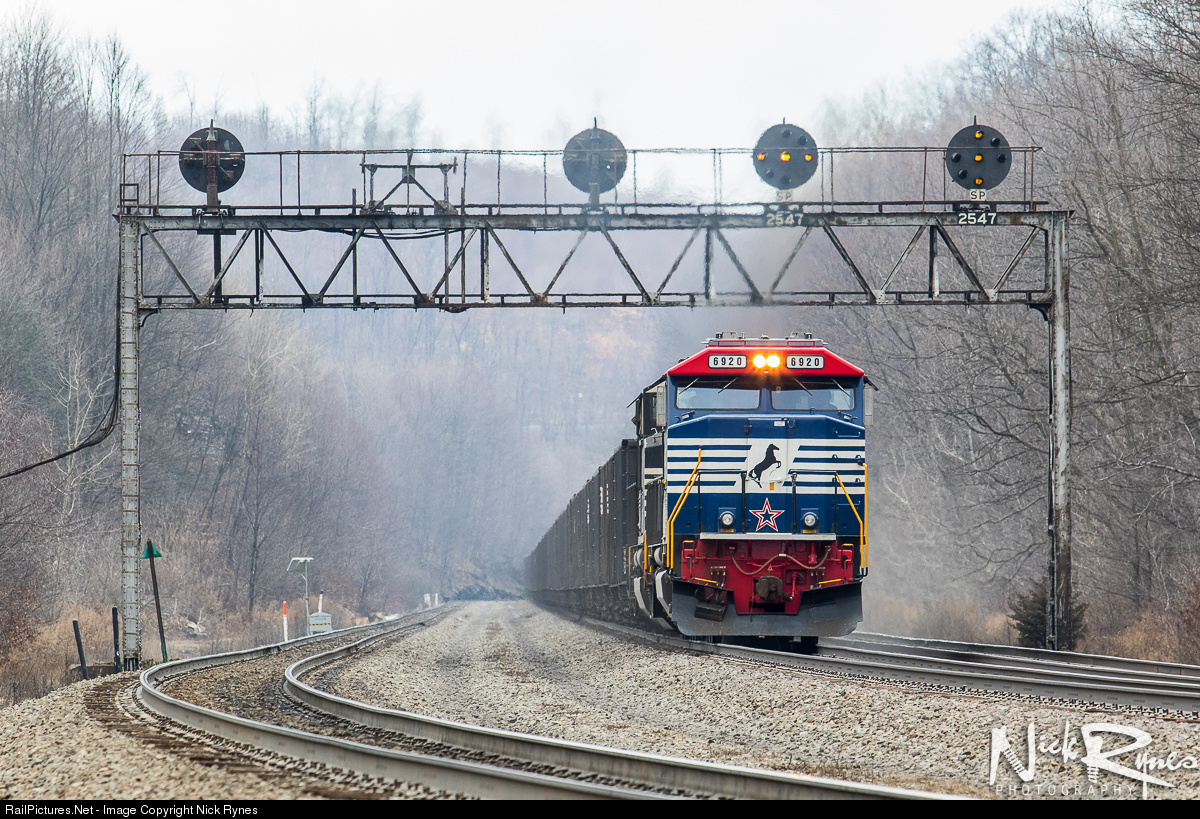 | Norfolk Southern train 510 crawls up the steep slope in Lilly, PA with coal loads Eastbound towards Harrisburg with NS 6920 on the point. |
