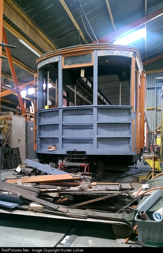 Key System 271, the Bay Area Electric Railroad Association's first car, continues to have its front end rebuilt in the car shop of the Western Railway Museum