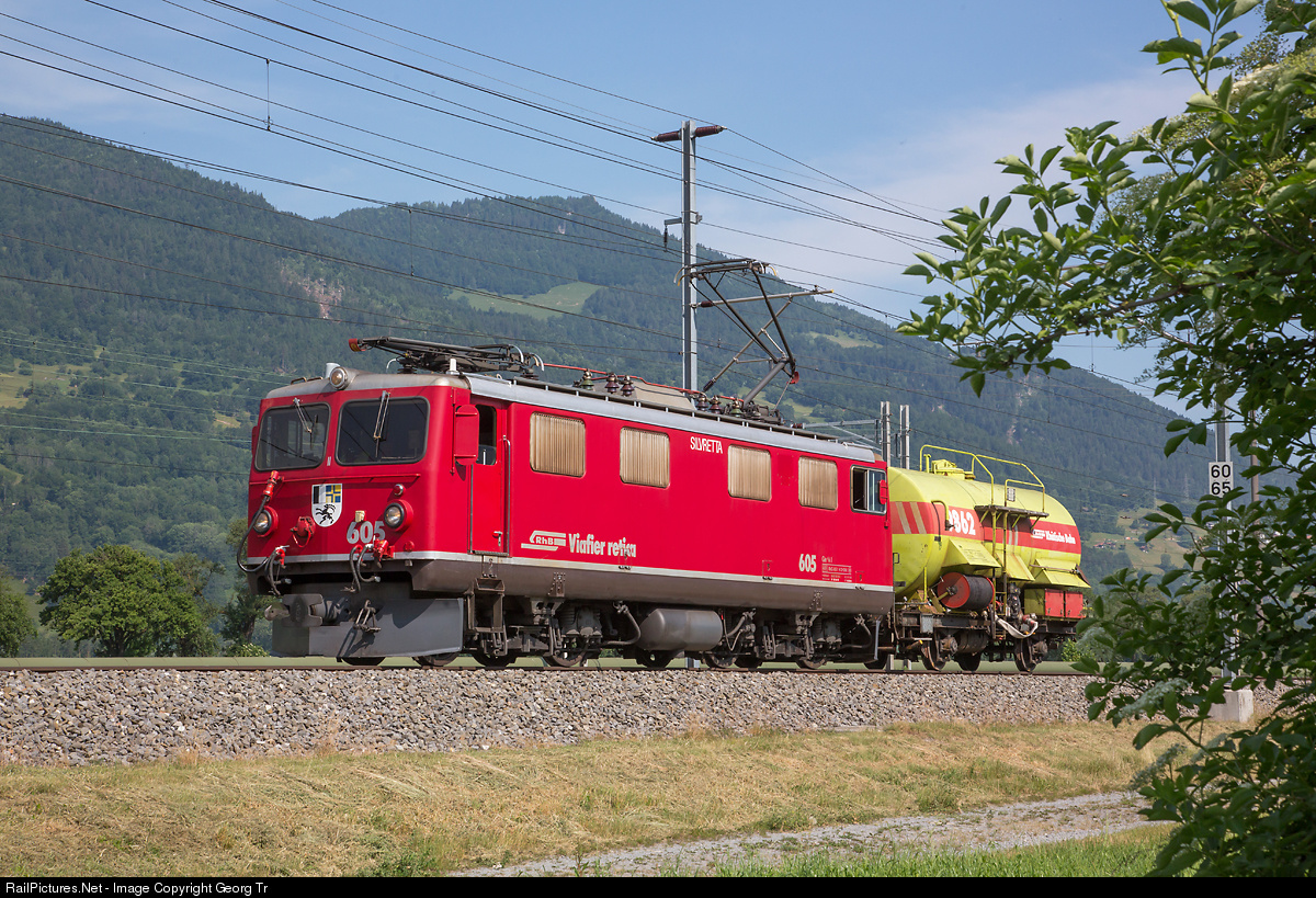 | Ge 4/4 I # 605 "Silvretta" is not historic locomotive, but 62 years in service now! She is pulling the water tank car WN 9862 (Xk 9049) as fire fighting train, following the steamtrain from Landquart to Samedan. |