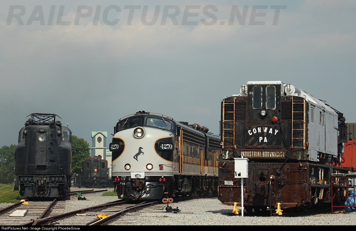 NS F9A #4270 sits quietly after parking in her spot for the Upcoming NS Days at the Railroad Museum of Pennsylvania, Behind her was #4271, and the NS exhibit car. She is also Joined by a PRR GG1 and DD1. To her right is a Conway PA, Conrail, crane.