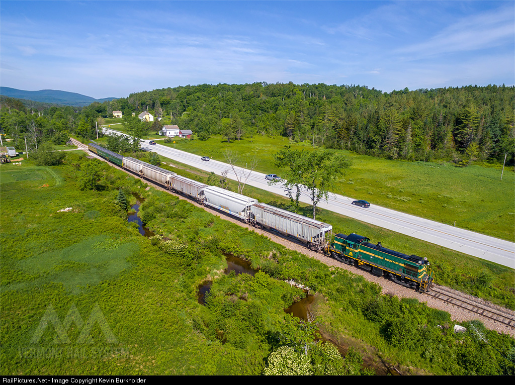 An Alco-RS-1-powered mixed freight in 2015...thanks to the National Railroad Historical Society convention, Vermont Rail System hosted a special Sunday mixed freight from Bellows Falls to Smithville, Vermont, with veteran ex-Rutland RS-1 #405 doing the honors. The entire mixed train is seen rolling along VT Route 103 on Sunday, June 14.