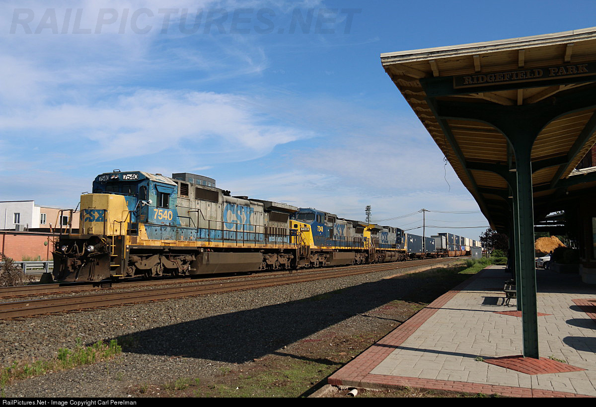 | CSX Q008 is approaching the cross over at CP5, where the train will diverge onto the NYS&W for the short run to the CSX Little Ferry Intermodal Terminal. The train is passing the former Ridgefield Park Union Station, once a stop for both New York Central and NYS&W passenger trains. |
