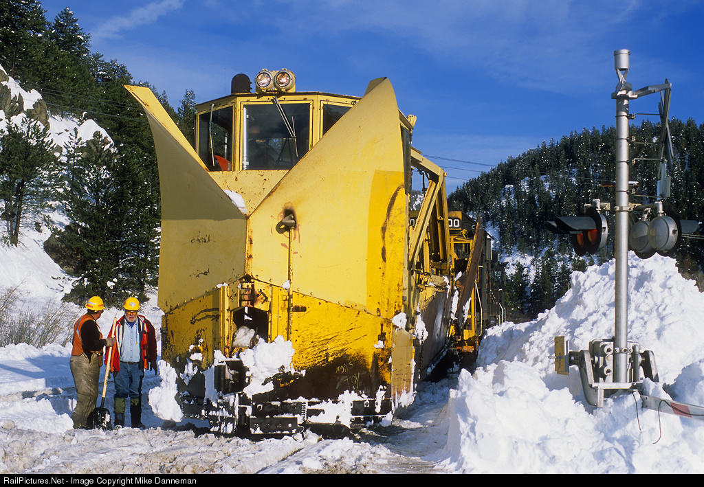 Rio Grande spreader AX-41 pauses at the Highway 72 grade crossing at Pinecliffe, Colorado, on March 21, 2003, during snowplow service. Power for the spreader train was a fitting Rio Grande GP40-2 No. 3100 and Union Pacific GP60 No. 1900 (former D&RGW No. 3154). This major blizzard closed transportation through much of Colorado during the March 17-20 storm. Denver received 31.8 inches, while Coal Creek Canyon got 71.8 inches and Rollinsville 87.5. With Pinecliffe located between the two, it received a whopping 6 to 7 feet of heavy, wet snow! Just how deep was the snow they were plowing? CLICK HERE