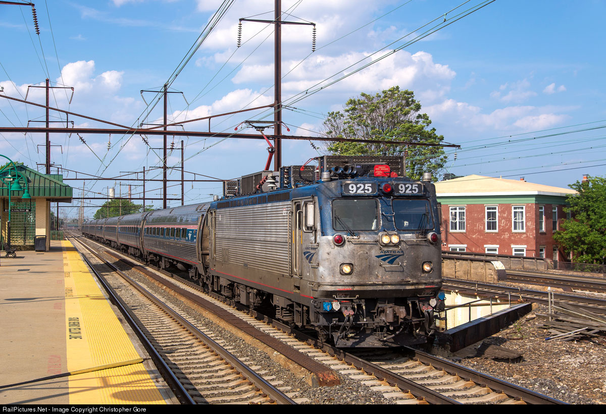 | Time is running out for Amtrak's AEM-7s, but for now it's business as usual for 925, as it leads a southbound through Rahway. |