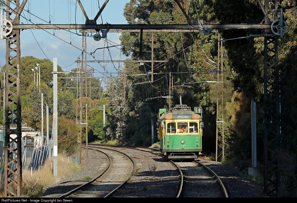 | Following a period of storage at Malvern depot, SW6 class tram 971 makes it's way to Preston Workshops via the route 96 light rail. |