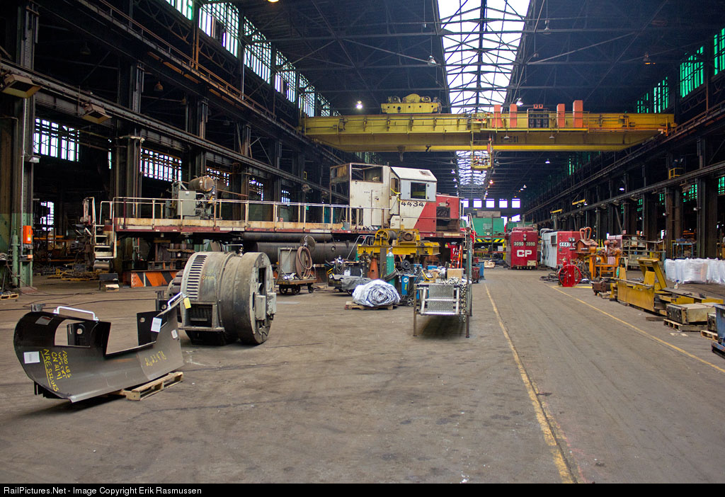 While visiting NRE in Silvis to inspect Eldon, IA's GP7 purchase, we were allowed to tour the entire ex-Rock Island complex with an escort and proper PPE. There were several SOO GP38's in for rebuild/repaint. SOO 4434 was off it's trucks and receiving extra frame work in the former erecting floor area.