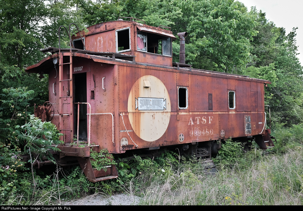 | On a long abandoned industrial siding of the Walking Horse & Eastern sits this former Sante Fe Caboose. I know it's been here since at least 2006, and may have been here much longer. This was one of several cabooses the South Shore Line bought and used for a while. How and why it ended up here in Shelbyville I do not know. The WHOE did run an excursion train for a couple of years, perhaps they intended to refurbish this unit and use it for caboose rides on the tourist train. |