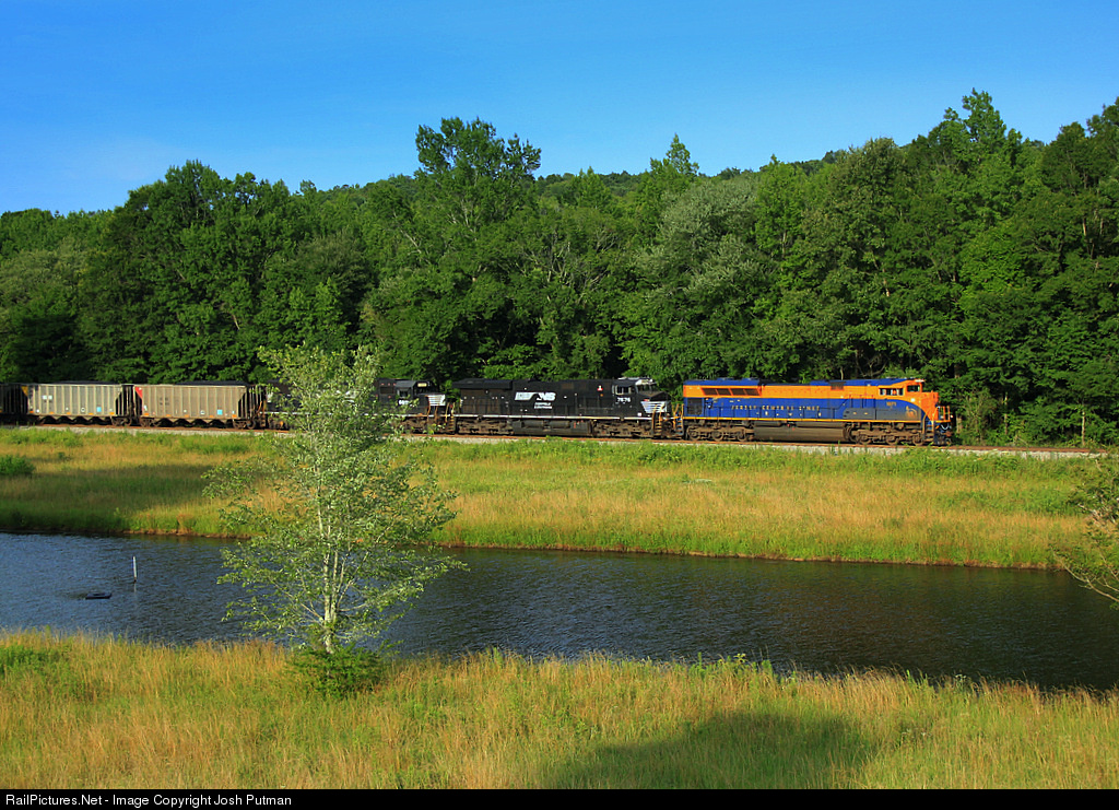 Train 74W eases past the pond behind Williams Orchid in Argo, Alabama with the Jersey Central heritage unit in charge. Getting this train in sunlight was a real challenge as summertime thunderstorms numerous today.