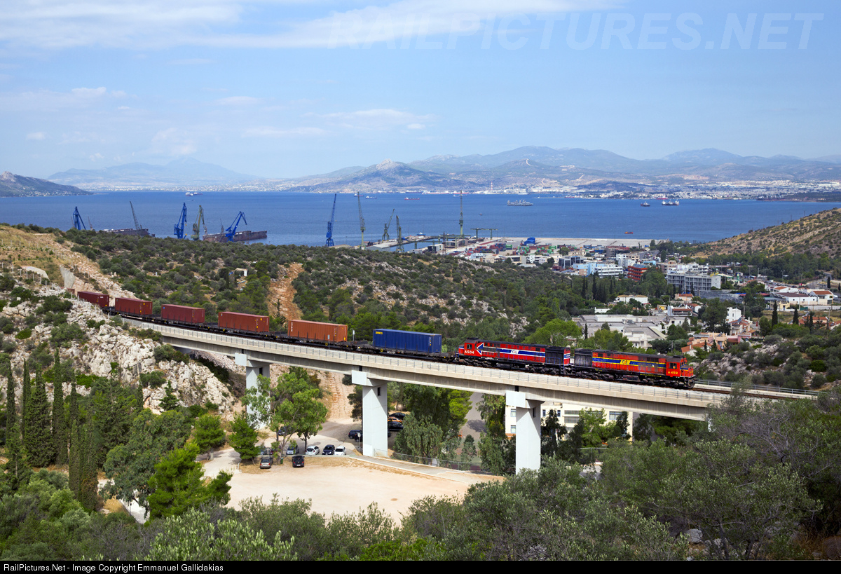 Freight Train from Ikonio Port to Central Europe passing over Skaramangas Shipyard