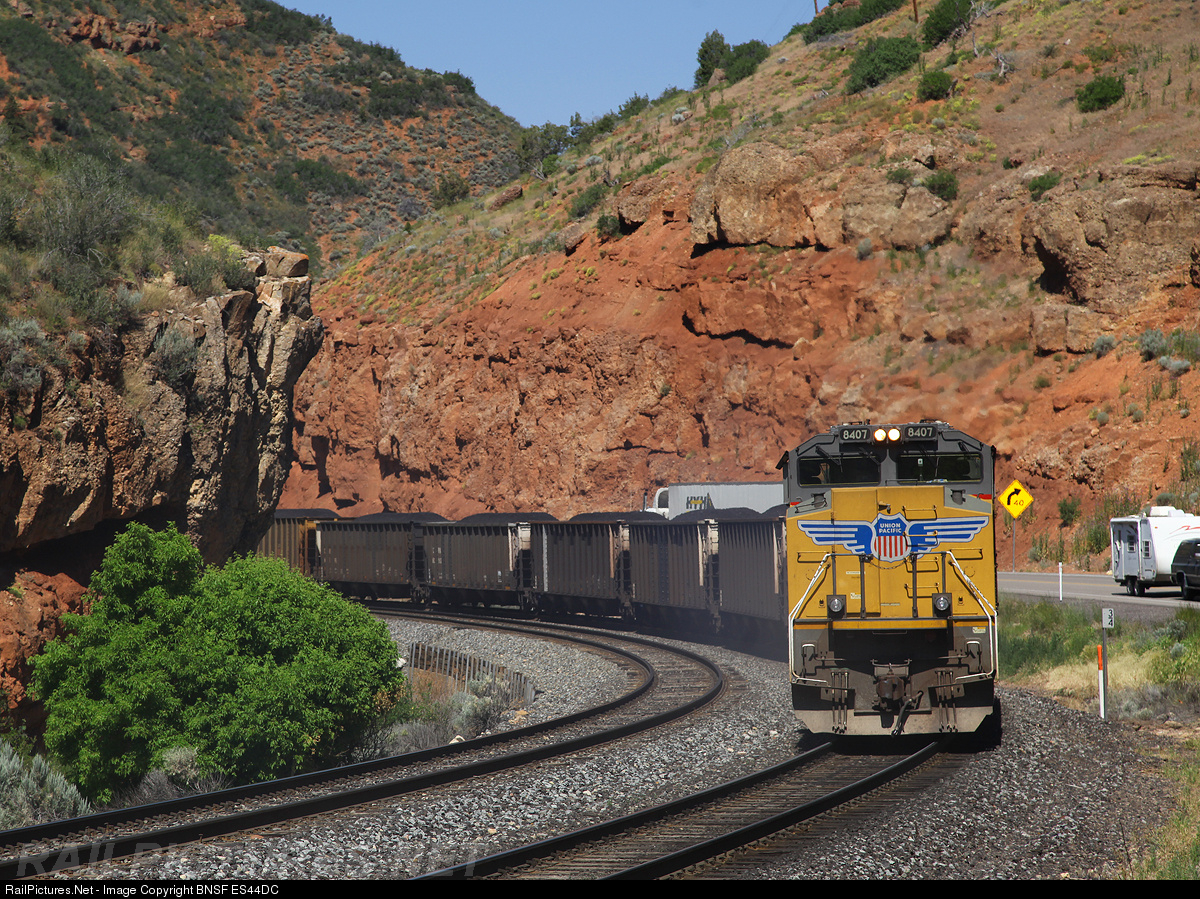RailPictures.Net Photo: UP 8407 Union Pacific EMD SD70ACe at Narrows, Utah by BNSF ES44DC