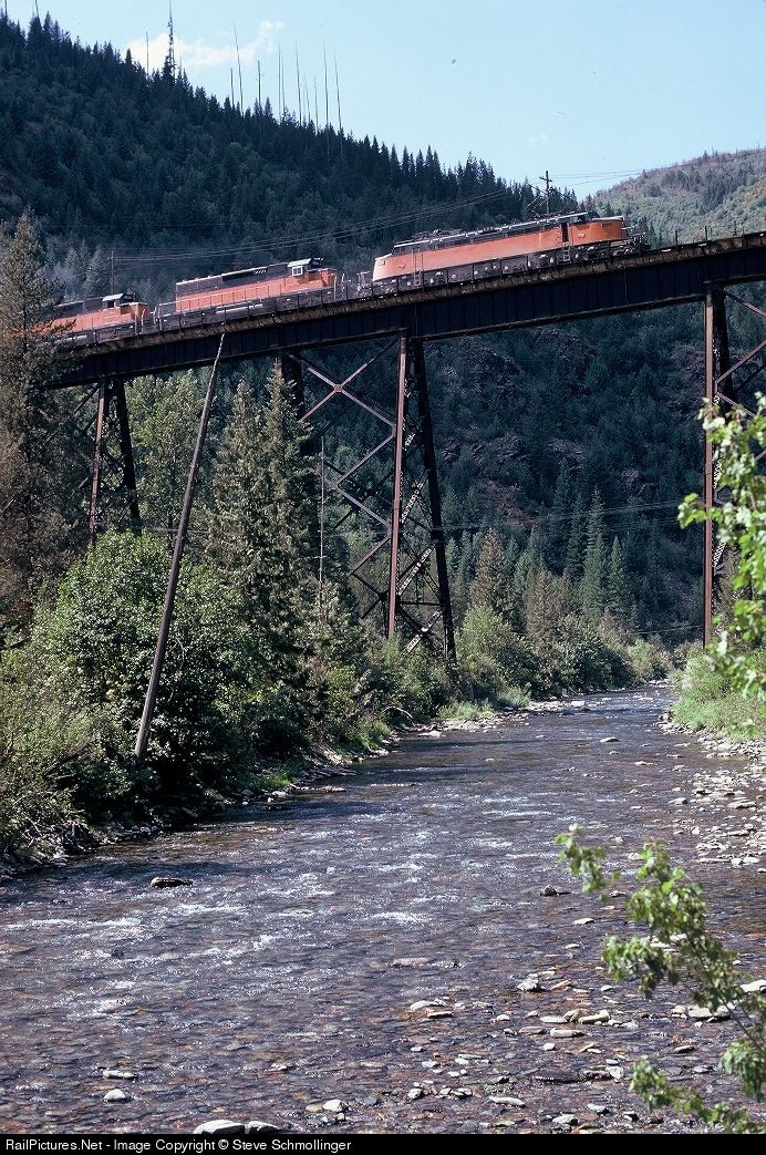 RailPictures.Net Photo: Milw E79 Milwaukee Road GE EF-4 at Steel Bridge, Idaho by Steve Schmollinger