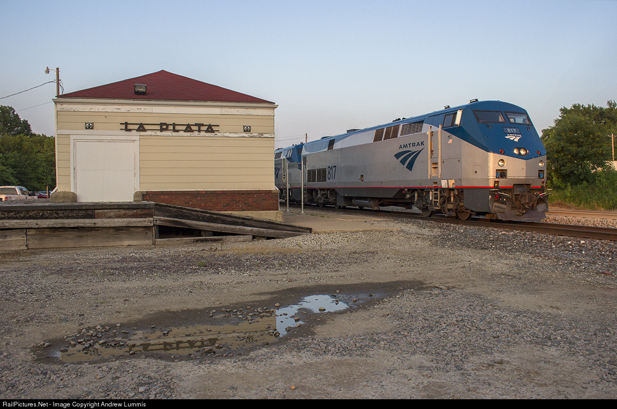 RailPictures.Net Photo: Amtrak 817 Amtrak GE P40DC at La Plata , Missouri by Andrew Lummis