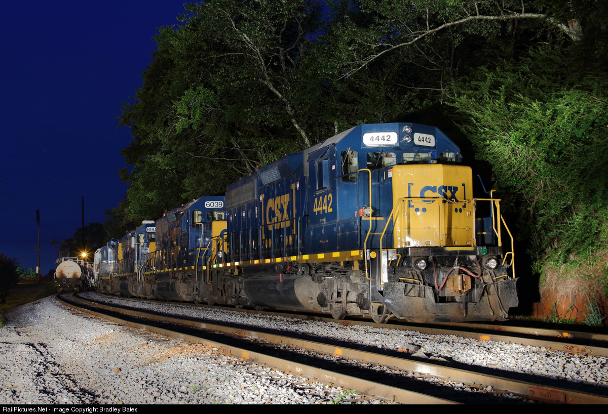 CSXT Local Freight Train A734 is seen here tied down in Bemiston, AL. awaiting a new crew to take the Train back Northbound to Birmingham, AL. with Interchange from the EARY. Bemiston is in Talladega, AL. City limits, it is also where CSXT & the Eastern Alabama Railway (EARY) Interchange