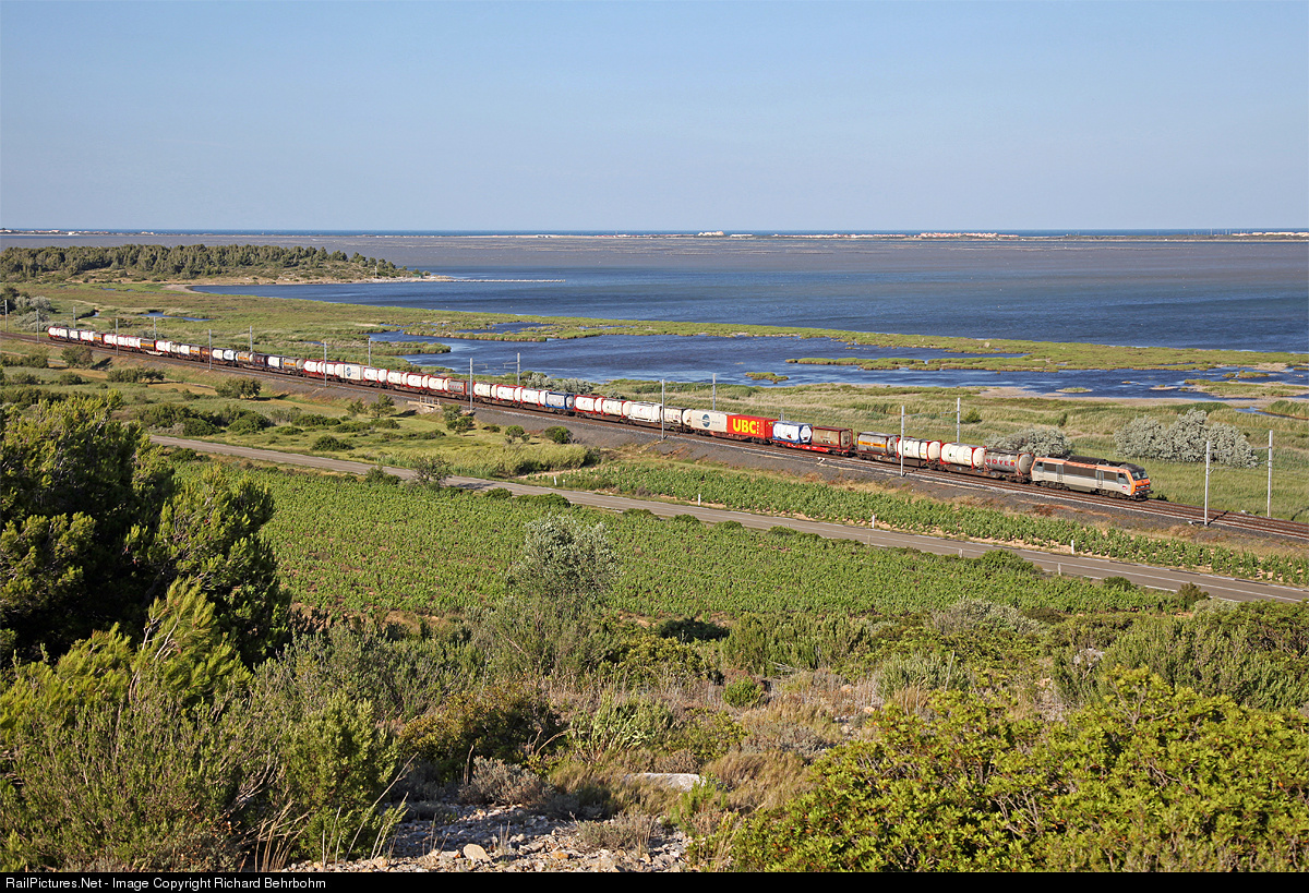 | An unknown BB 26000 is pulling a freight train to Cerbère/Port Bou, border station France / Spain. |