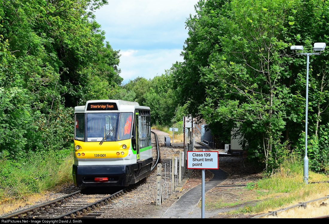 | The short (0.8miles/1.3km) branch line from Stourbridge Junction station to Stourbridge Town was opened in 1879,and has seen a variety of motive power over the years.The branch is currently worked by a pair of Parry People Movers,one of which is seen here at Stourbridge Junction station. |