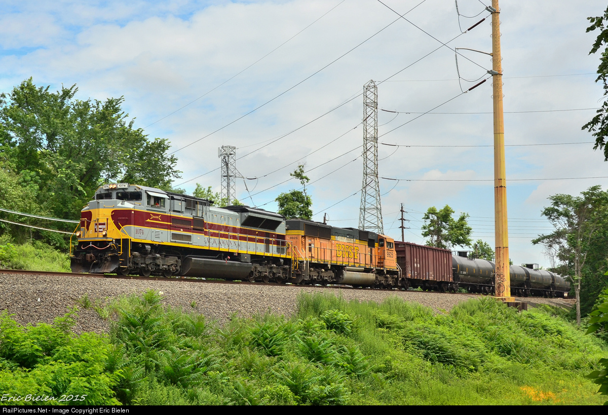 The Lackawanna heritage unit made its way down the Lehigh Line on point of loaded crude oil train K038.