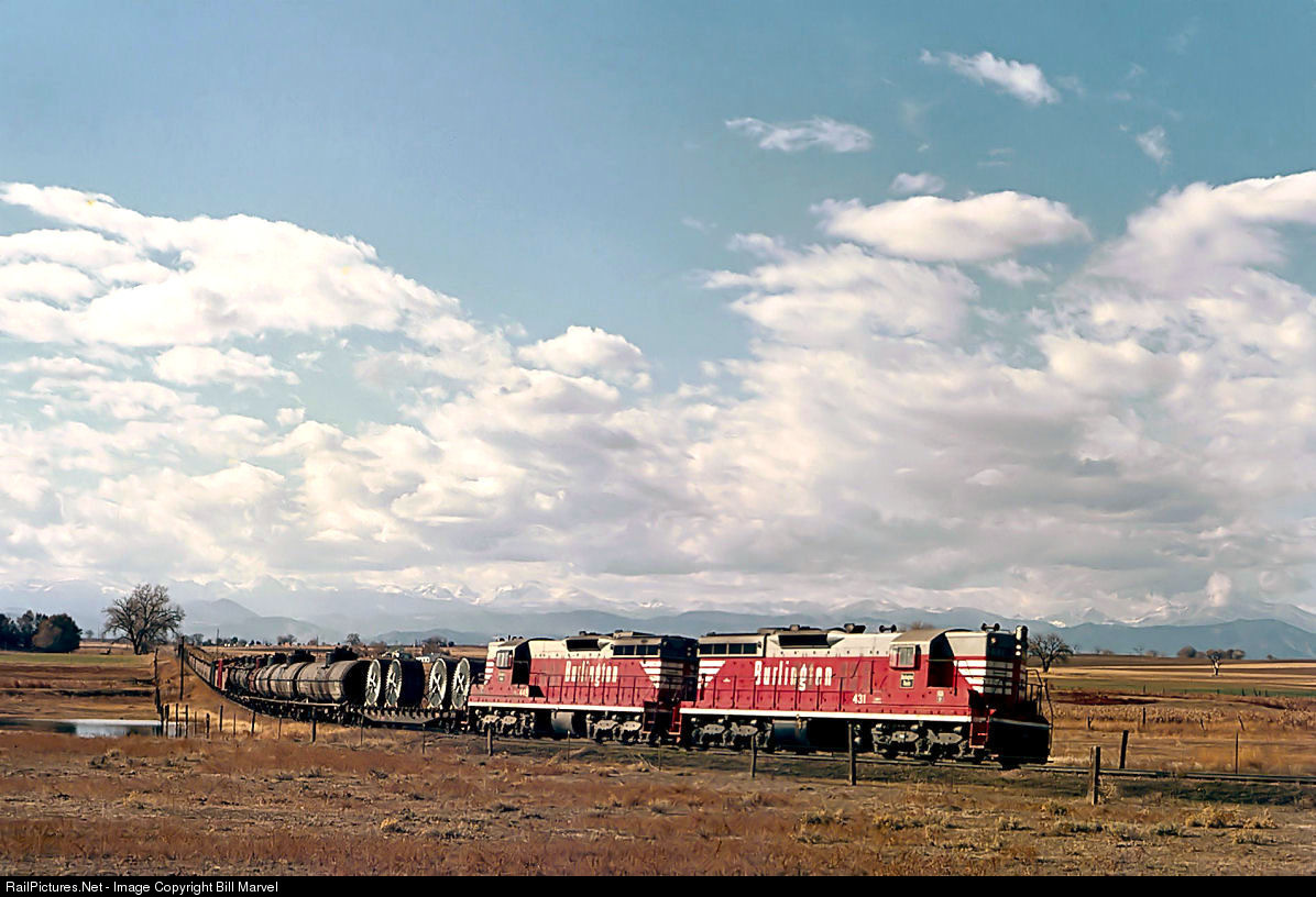 On a sunny November morning in 1968, the annual sugar “campaign” is at its height, and railroads are busy bringing in the beets all over northern Colorado. Rambling along Burlington’s Buckwheat Branch near Lafayette, SD9 431 and 449 have a train of beet gons and a half dozen or so tank cars for molasses loading at Great Western’s Longmont refinery. Fifty years after, this scene is much changed. Sugar no longer dominates the landscape. The Longmont plant is a magnificent ruin. Suburbia has spread across these fields, and the branch, abandoned in sections, has caught the eye of dreamers and planners as a possible route for rail commuter operation along the front range between Denver and Ft. Collins.