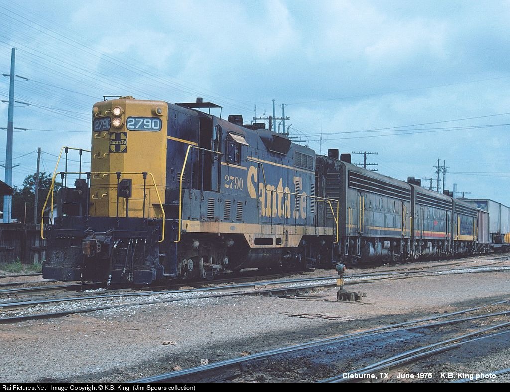 RailPictures.Net Photo: ATSF 2790 Atchison, Topeka & Santa Fe (ATSF) EMD GP7 at Cleburne, Texas by K.B. King (Jim Spears collection)