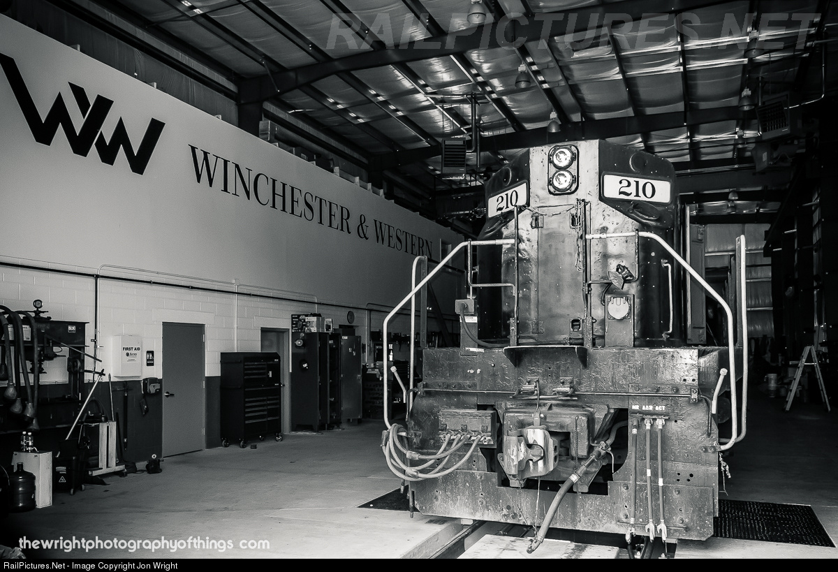 A look inside the new Winchester and Western Locomotive Shop which opened in the Fall of 2014 in Gore, VA. Alco slug WW 210 sits over the pit as it goes through routine maintenance.