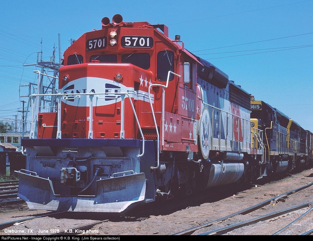 RailPictures.Net Photo: ATSF 5701 Atchison, Topeka & Santa Fe (ATSF) SD45-2 at Cleburne, Texas by K.B. King (Jim Spears collection)