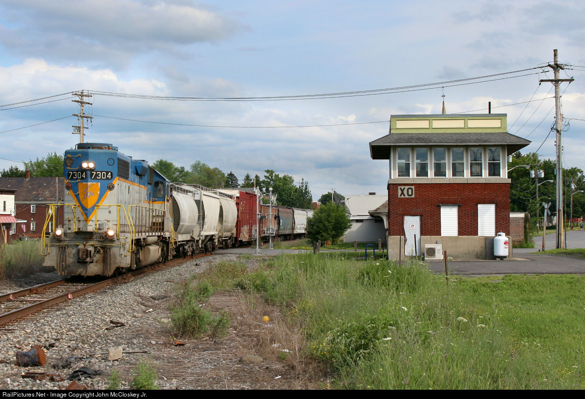 Around 10am my friends and I recieved a tip that CP Saratoga to Kenwood local D45 was making a extremely late run out of Saratoga around with DH #7304 running solo. After making the run to Kenwood the train had to return to Saratoga. In this scene the train is seen passing the ole' D&H XO Tower in Mechanicsville with D&H 7304 leading LHLF..