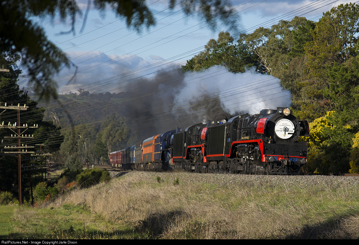 | Framed by the Telegraph and communication wires; R707, R761 and R711 lead the 707 Operations special "30 years of Plan R" train.