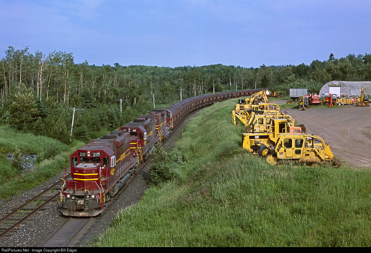 DMIR 210, 410 and 212 rolls a morning ore transfer down Proctor Hill from Proctor Yard to the Duluth ore docks. The train is about to pass under a frontage road and I35 as it passes a lot full of construction equipment. Note the uphill main is out of service by 2005.