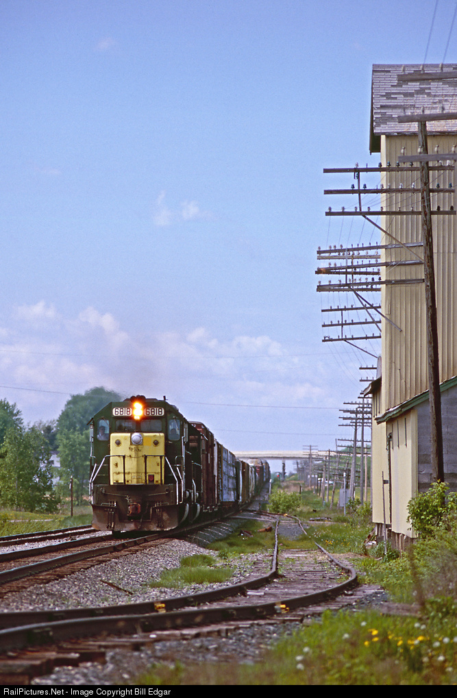 CNW 6818 and an SD60 power an eastbound ITPRA from Itasca Yard, Superior, WI to Chicago. The train uses trackage rights over Wisconsin Central between Itasca and Necedah, WI. Shown at Auburndale on the former Soo main east of Marshfield, it is interesting to note that the communication lines were actually attached to the elevator.