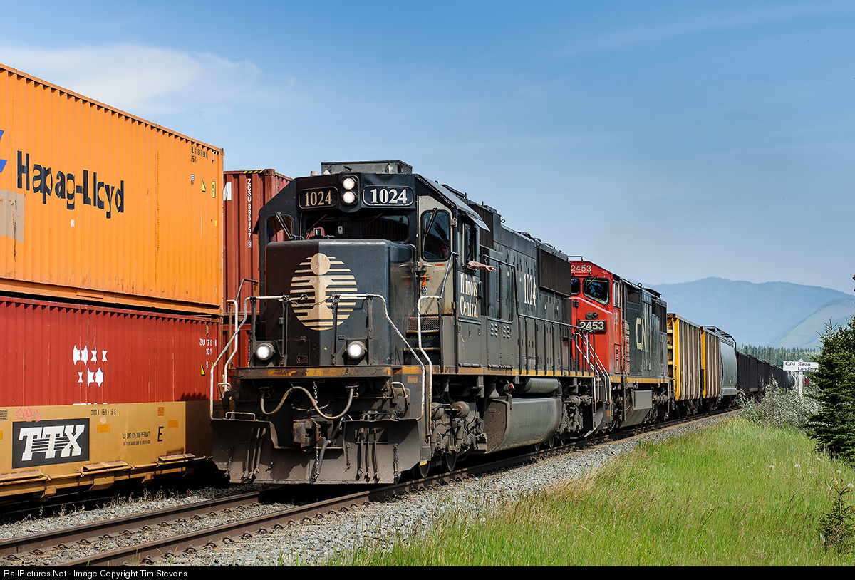 IC SD70 1024 and CN C40-8M 2453 glide down the main at Swan with 171 cars of A417 in tow.