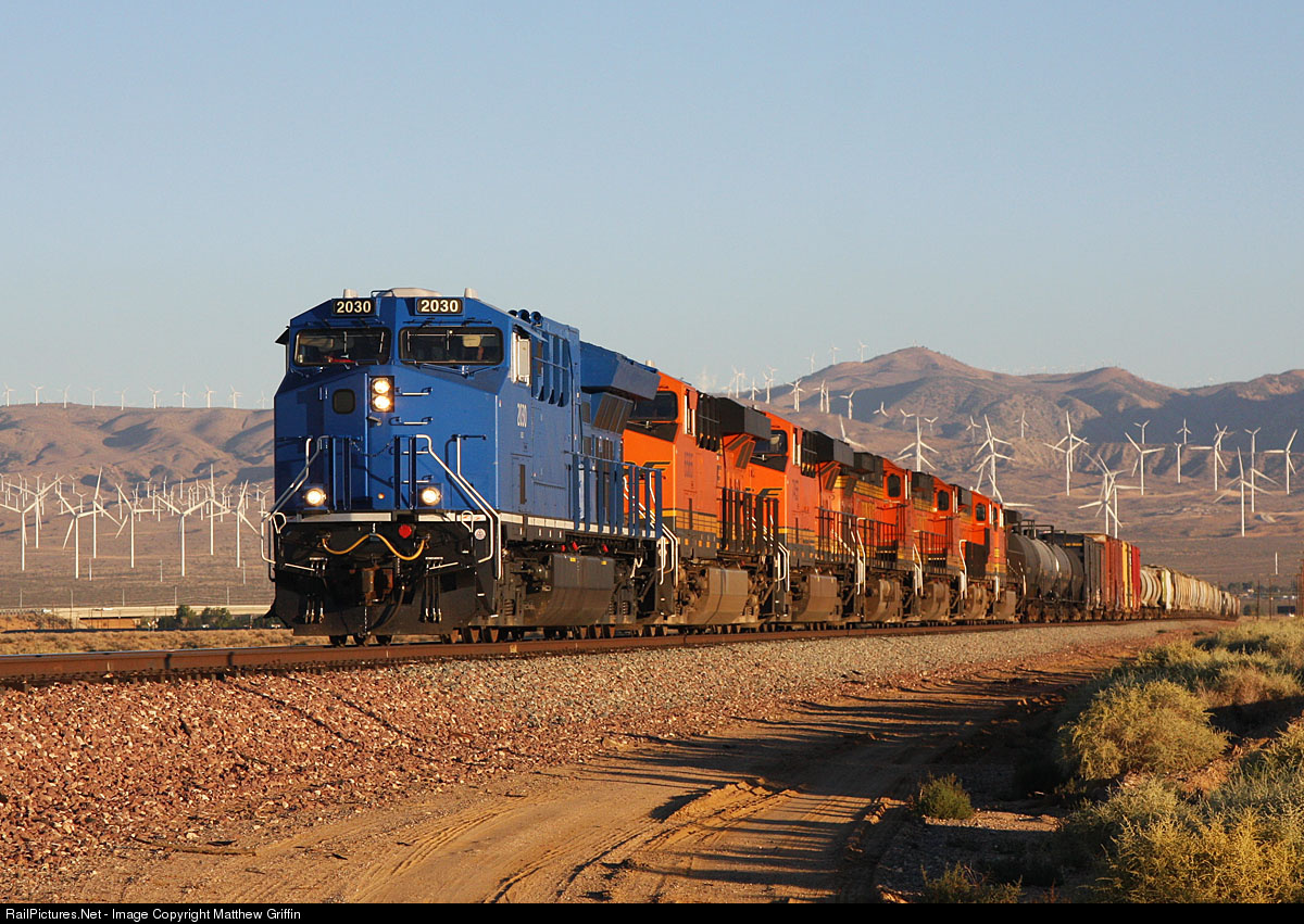 | With the trademark Windmills dotting the Tehachapi Mountains rising in the background, GECX 2030 leads this Stockton to Barstow manifest. |