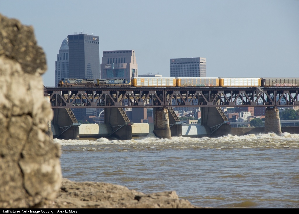 CSXT Q268 northbound over the "Fall Of The Ohio" with downtown Louisville, KY in the background.