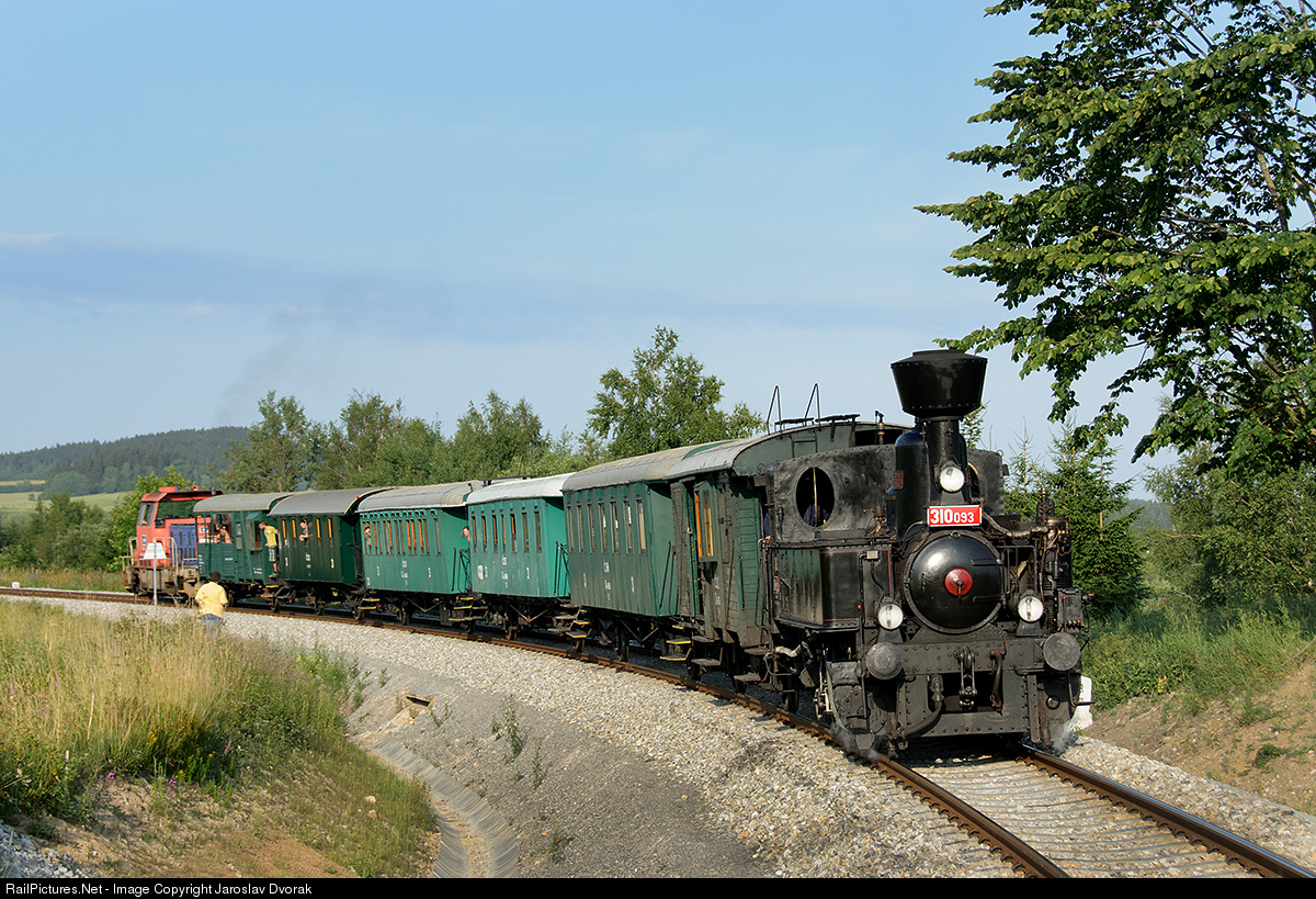 | SUMMER WITH STEAM - Train Josef Seidel - vintage cars 3rd class with a platform, a buffet and an observation car at the head of the locomotive 310,093 at the end of a locomotive 708 011-2.