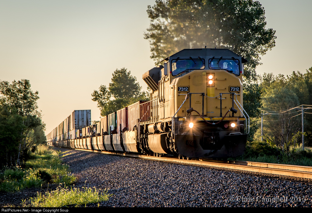 The sun is just coming up in New Haven, Indiana and NS 7312 leads a stack train westbound at Webster Road