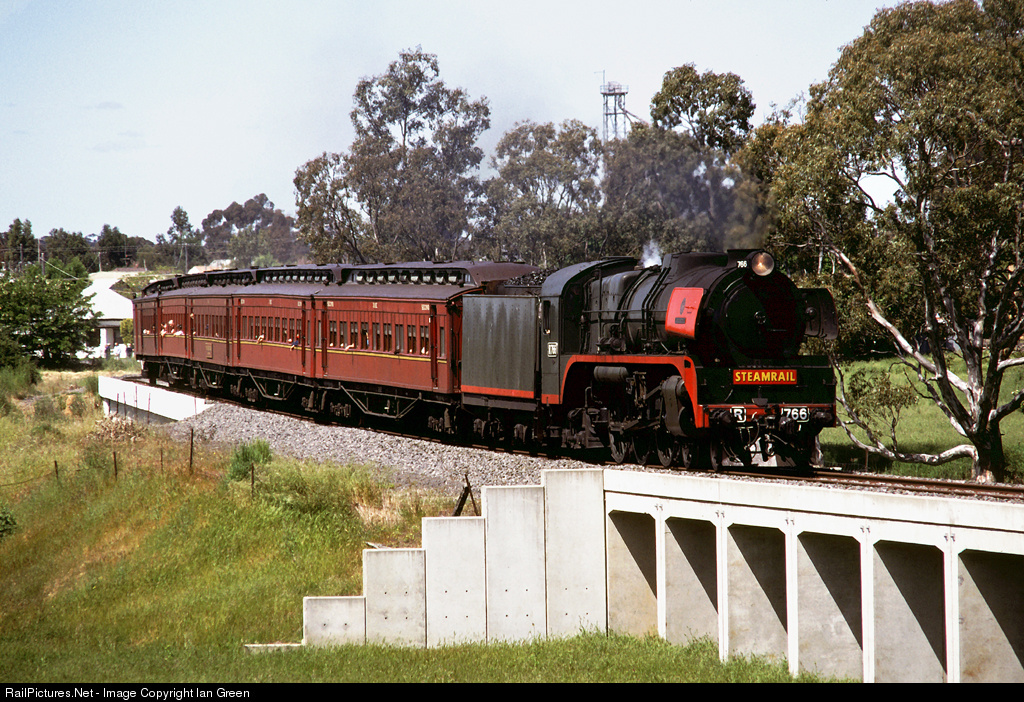 | Operating over the now closed Maryborough-Ararat line, R766 works an ARE tour through the country town of Avoca. |